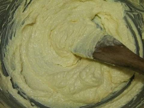 - Campur mentega & gula, aduk dengan menggunakan spatula hingga tercampur rata dan lembut. Jangan aduk terlalu lama karna nanti kue akan meleber.